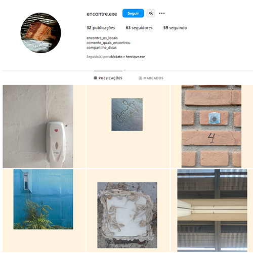 A obra faz referência à prática de geocaching, atividade lúdica baseada na busca por objetos com base em geolocalização, tal como uma “caça ao tesouro” em espaços de acesso público. Aqui, Henrique Zadoroguoi (também conhecido como Henrique.exe) se inspira nesta prática para criar um incógnito perfil no Instagram que exibe uma série de imagens sem descrições, apenas números que identificam sua inclusão no jogo; em sua maioria, as fotos mostram enquadramentos em plano detalhe, focando elementos diminutos em paredes ou pisos, pequenas intervenções, resquícios ou minúcias que pedem uma atenção reconfigurada; por sua vez, o título do perfil – encontre.exe – é o convite ao desafio para que o público desvende a localização e o ponto de vista em que cada foto foi tirada. A dica é que toda a série de fotos foi realizada no Instituto de Artes da UNESP na cidade de São Paulo. A obra foi parte integrante do pavilhão “A net art morreu mas passa bem” da The Wrong Biennale 2023-2024.