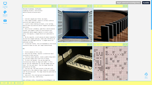 Aqui, Pessoto e Kouts realizam uma conversa visual: todo dia um deles posta uma imagem no site, que é respondida por uma outra imagem, em um jogo que prossegue diariamente com mais imagens, evocando uma espécie de procedimento performático – um programa em execução permanente. As imagens têm diferentes naturezas, mas aqui aparecem descontextualizadas, tal como os estímulos visuais utilizados nos memes de Internet. O que fica evidenciado neste diálogo é a habilidade do olhar dos seus jogadores/executores em cada escolha: conforme o encadeamento de imagens acontece, percebe-se as relações entre similaridades de formas, contrastes, entre outras particularidades visuais. Este trabalho fez parte do pavilhão ‘A net art morreu mas passa bem’ da The Wrong Biennale 2023-2024.
