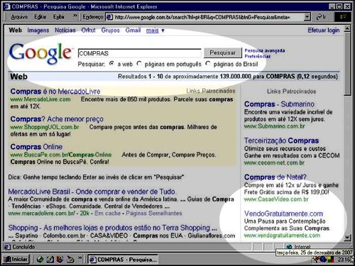 Abaixo, uma das telas do Google (retirado da documentação do próprio site), em que temos o termo buscado e a sugestão do link do site.