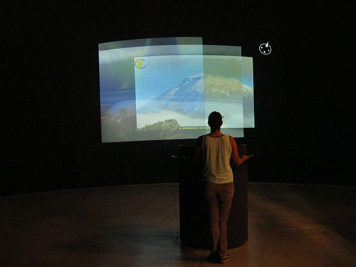 A obra é uma instalação que funciona como uma espécie de mirante virtual na qual o público, operando uma estrutura física com dispositivos analógicos e digitais, navega e vislumbra imagens da Internet geolocalizadas, ou seja, vinculadas a coordenadas do globo terrestre. As imagens exibidas estão associadas a pontos de vista sobre os lugares em questão, tais como paisagens, vistas áreas, visões panorâmicas, entre outras, proporcionando a experiência de um “dispositivo de visão” que se articula através do imaginário coletivo da Internet. Conforme o público navega pelo globo, as imagens são apresentadas e justapostas em tempo real, numa sucessão e encadeamento de diferentes planos e perspectivas, a formar uma infinita visão panorâmica do mundo.